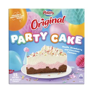 Top off your birthday celebrations with the famous Peters Ice Cream Cake. Mixed Flavors of Vanilla, Strawberry and Chocolate in one.